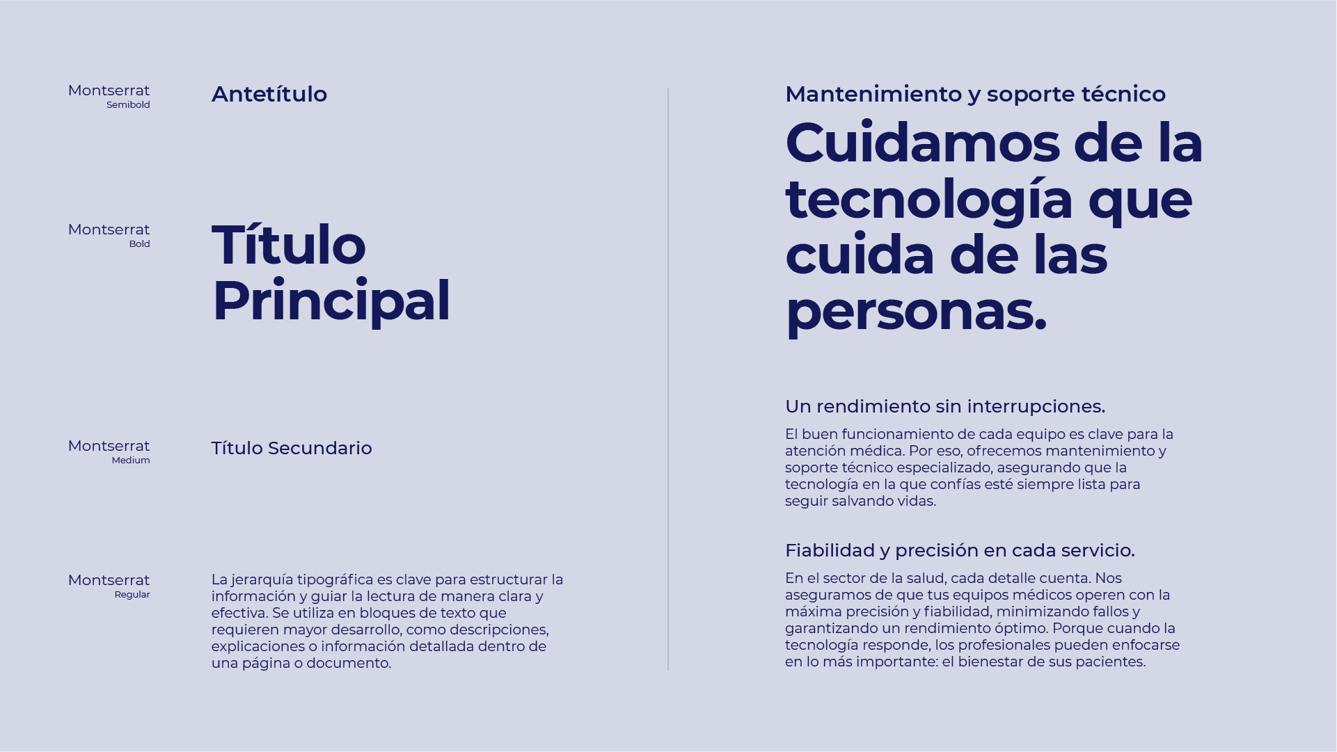 Montserrat, diseñada por la tipógrafa Julieta Ulanovsky es nuestra tipografía principal. Su diseño versátil y escalable se adapta a cualquier formato sin perder claridad. Gracias a su amplia variabilidad de pesos, permite jerarquías flexibles manteniendo siempre un alto nivel de accesibilidad y legibilidad.